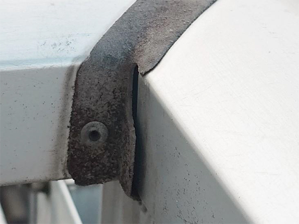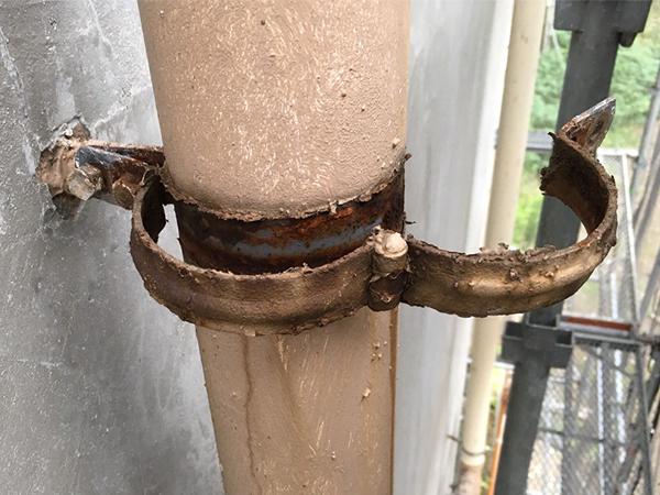手摺のビスの緩みによるぐらつきは、安全に直結する重要な問題です。接合部材の破損や劣化が見られる場合は特に危険で、放置すると手摺が外れ、転倒や落下事故につながる恐れがあります。さらに、手摺内部に浸水すると、本来排水を想定していない内部に水がたまり、部材の劣化や腐食だけでなく、土台となるコンクリートの劣化を招く原因にもなります。