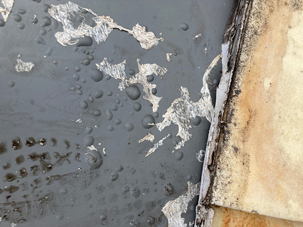 防水層の下で進行するため発見が遅れやすい箇所です。 -