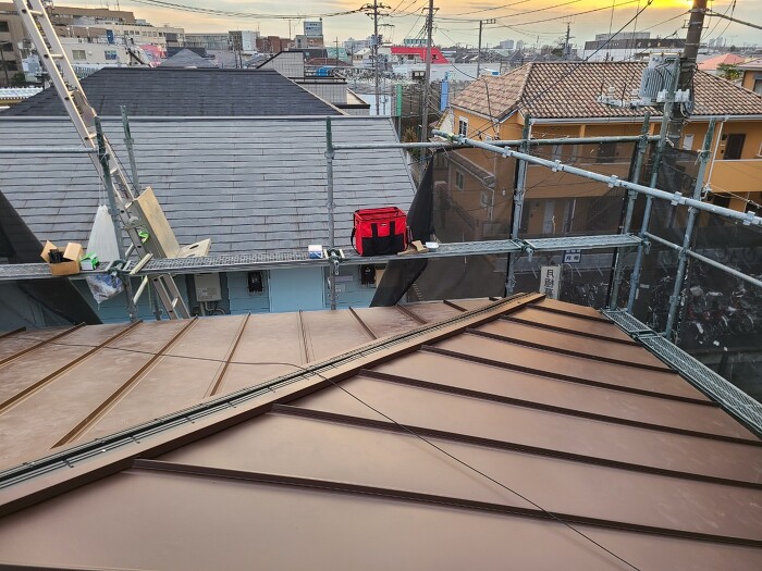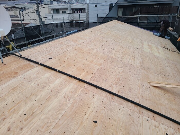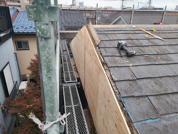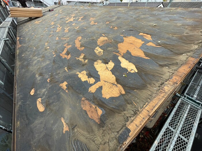 | 施工内容 | 屋根葺き替え工事、屋根下地腐敗箇所補強大工工事、他 |