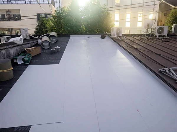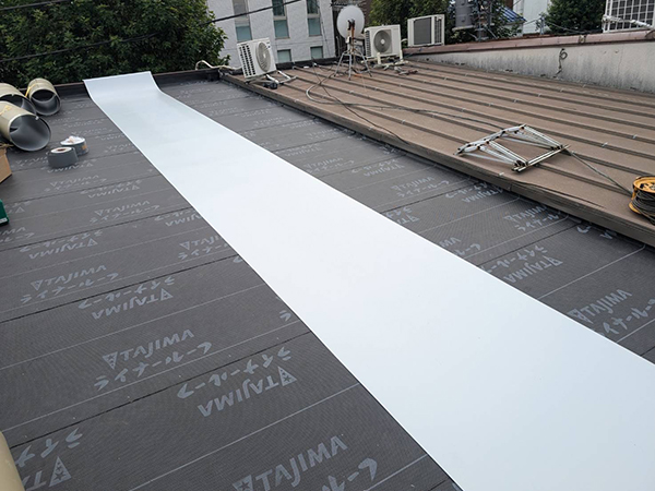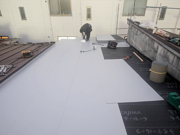 既存の防水層や防水シートを撤去せず、その上から新しい防水シートを重ねて施工する工法です。当社の施工実績の中でも特に耐久性に優れており、長持ちする方法としておすすめしています。