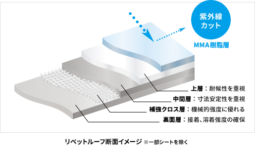中でも独自技術によるMMA樹脂層は、紫外線をカットして耐候性をさらに高めます。